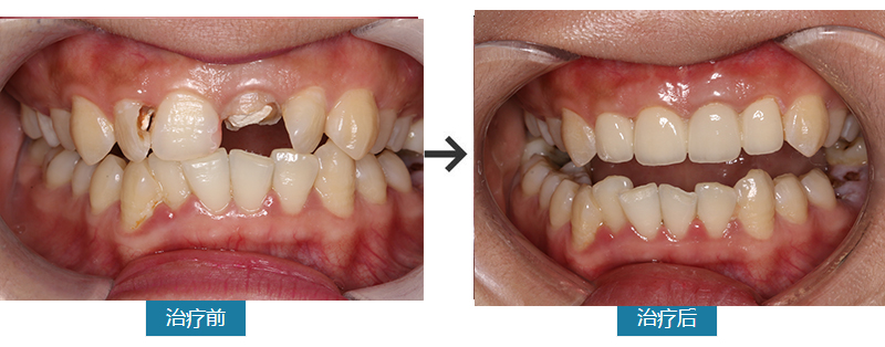 11、12、22慢性牙髓炎,21慢性根尖周炎。根管治疗后做冠修复