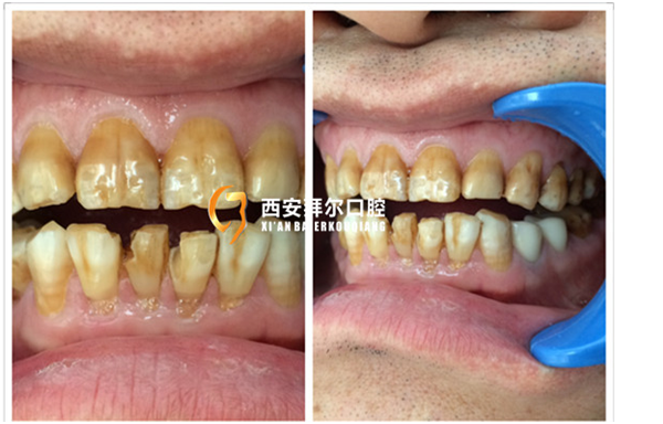 42岁的李先生是个私营业主,做建材生意,白手起家到现在有了自己的事业。李先生说生意上应酬很多,所以生活习惯不好,喝酒吸烟是家常便饭。遇到不顺心的事,也是烟酒相伴。现在不但是胃不好,牙齿成了更明显的“受害者”。现在李先生最不愿意照镜子看自己的牙齿,觉得太惨不忍睹了,很影响自己的形象。