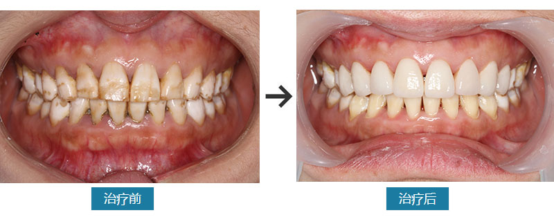 全口牙齿重度氟斑牙,影响美观,现来就诊,要求修复