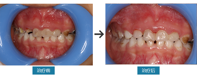 很活泼的一个小男孩,妈妈带着来看牙。我们的儿牙医生先跟孩子沟通,结果孩子就反映自己的牙齿全被虫吃了,现在牙坏了,有的还疼,连饭都吃不了了。儿牙医生张小梅检查后发现,孩子多颗牙齿严重龋坏,有的已经伤及牙髓,需要根管治疗。分两次开展,一个多星期结束所有的治疗和修复。小朋友虽有一点点害怕,但在家长和医生的鼓励下,还是很勇敢,比较配合。家长也在医生和助理的讲解下,学了一些口腔知识,并表示以后会好好监督孩子刷牙,注意饮食,不然孩子受罪家长心疼。