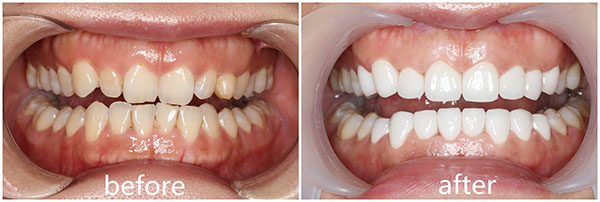 牙列不齐,63乳牙滞留。全瓷冠修复。