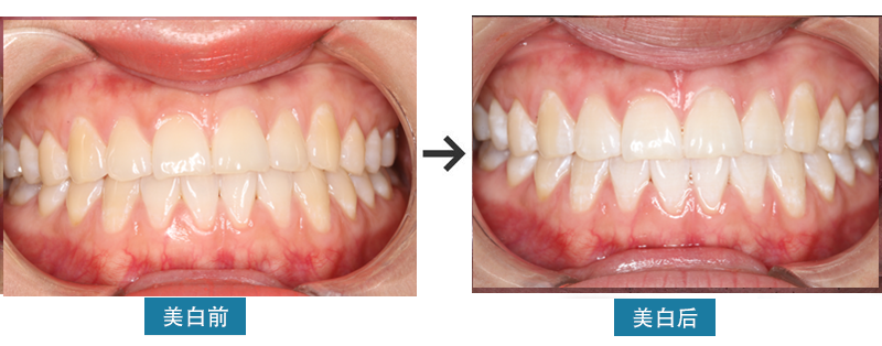 全口牙齿发黄,牙釉质发育尚可,内源性色素沉着,先洁牙后进行冷光美白
