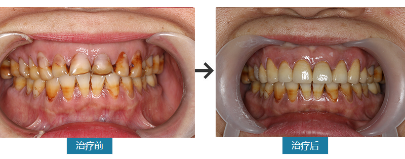 15、16、23、26、33、34、35、46锲状缺损,用流体树脂材料实施充填术。14-24重度氟斑牙,建议全冠修复。患者同意,比色、局麻,牙体预备,取模,制备暂时冠,调合,抛光。一周后去临时冠,戴永久冠。